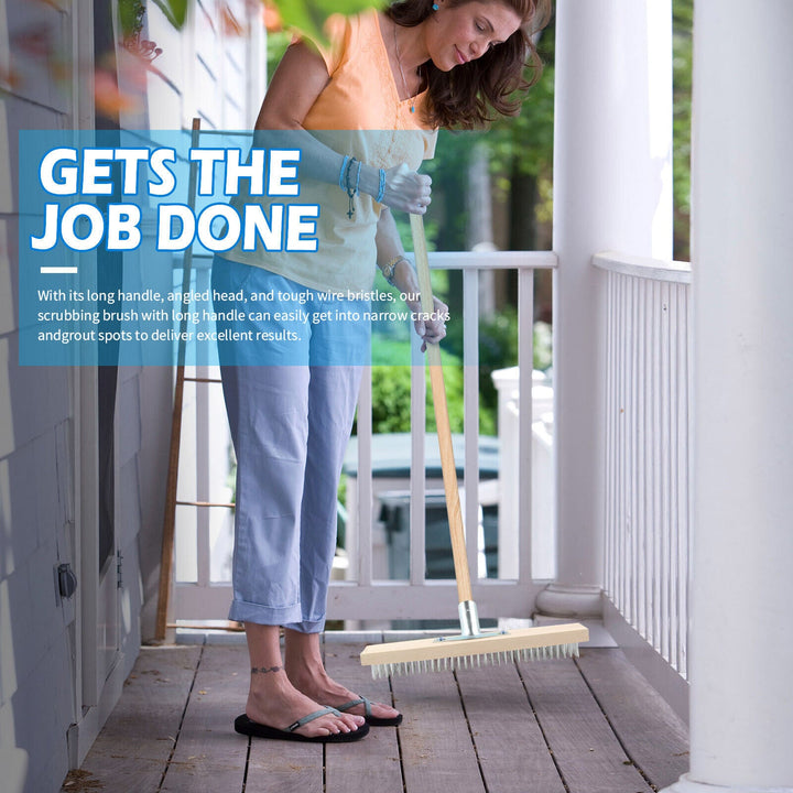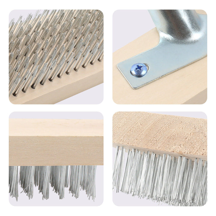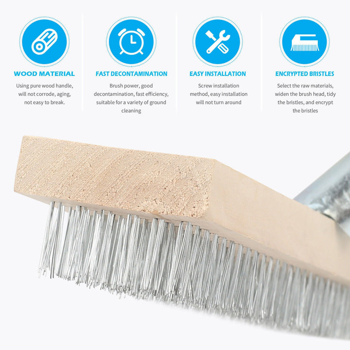 【High-Quality Materials】 :The bristles are made of durable copper-plated steel wire material, which is hard and wear-resistant; The broom head is made from high quality wood, the type that won't easily crack or rot, even with continuous exposure to moisture. The metal bracket is designed to be portable at 45 degrees, no need to bend over for cleaning.